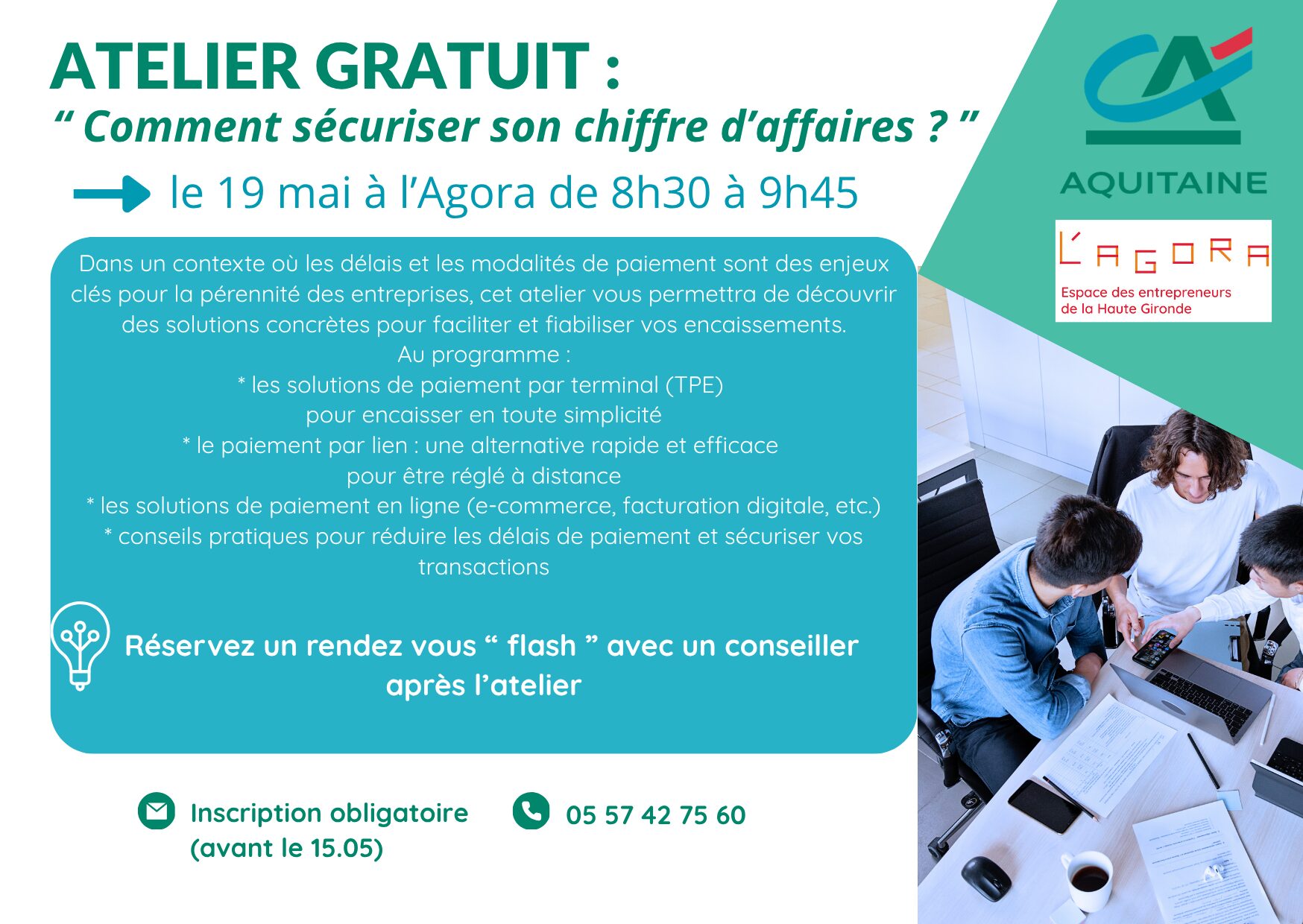 [Atelier gratuit] « Comment sécuriser votre chiffres d’affaires ? » Le 19 mai 2026 de 08h30 à 09h45 ATELIER GRATUIT Publié le lundi 27 avril 2026 Inscription ci-dessous Comment sécuriser son chiffre d’affaires ? LinkedInCe champ n’est utilisé qu’à des fins de validation et devrait rester inchangé.Identité(Nécessaire) Prénom Nom Téléphone(Nécessaire)E-mail(Nécessaire) Nom de l'entreprise (si déjà créée) Je souhaite rencontrer un conseiller à l'issue de l'atelier(Nécessaire) Oui Non RGPD(Nécessaire) J’accepte la politique de confidentialité.Les informations recueillies à partir de ce formulaire font l’objet d’un traitement informatique ayant pour seule finalité de répondre à votre participation à l’atelier « comment sécuriser son CA » de l’Agora ; le responsable de traitement est la Présidente de la CCE. Les données marquées par « (Nécessaire) » dans le formulaire doivent obligatoirement être fournies, les autres sont facultatifs. La base légale du traitement est fondée sur l’article 6 (1) e du règlement général sur la protection des données – RGPD. Ce traitement de données relève de l’exercice de l’autorité publique dont est investie la Communauté de communes de l’Estuaire en application du règlement général sur la protection et des données et de la loi Informatique et Libertés modifié.